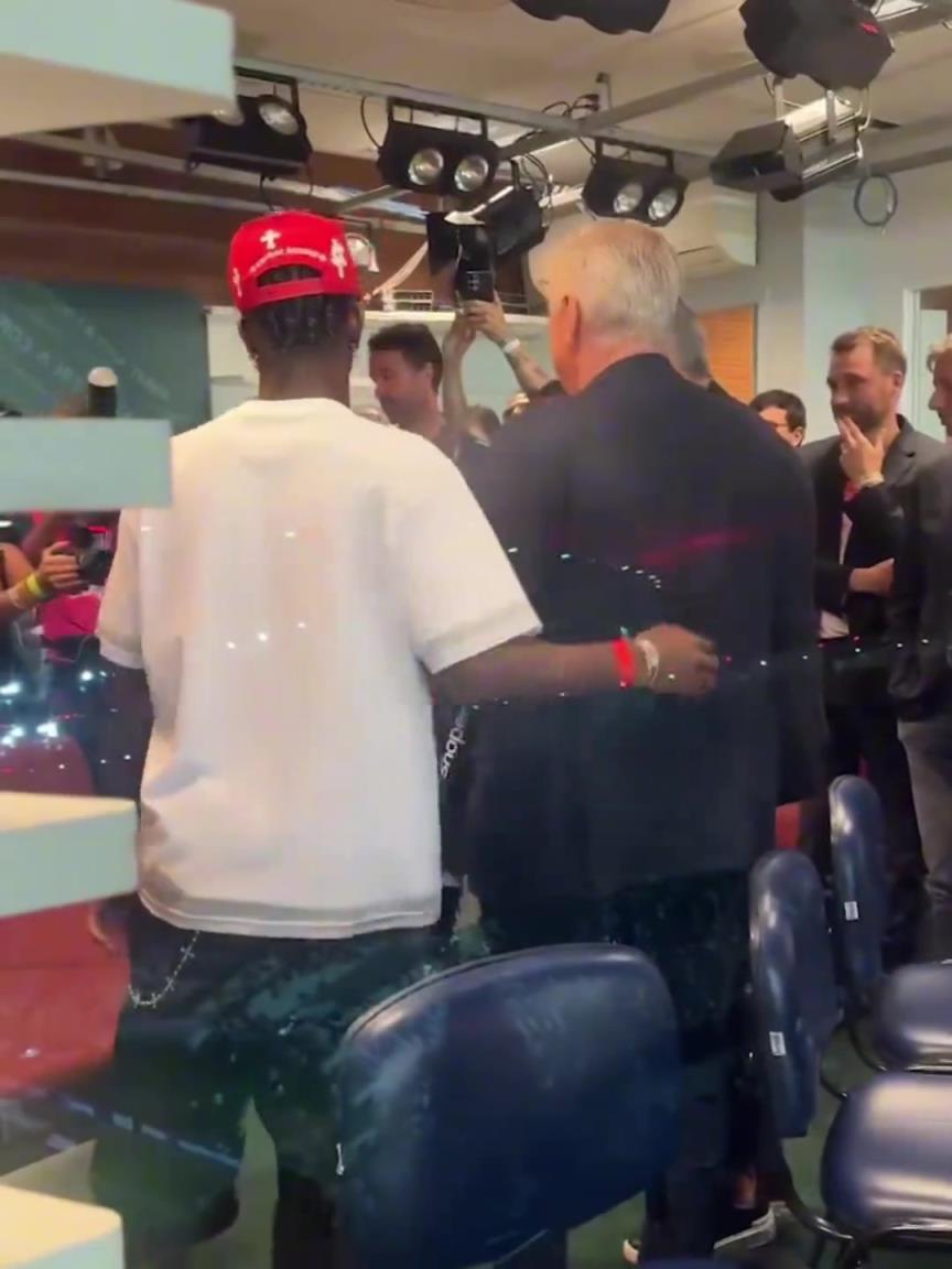 • 又见面了维尼修斯回到巴西与正在考察球员的安切洛蒂谈笑风生